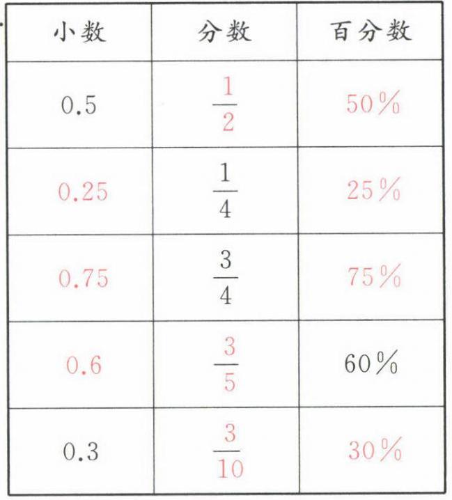 4.用小数、分数、百分数分别表示涂色部分。