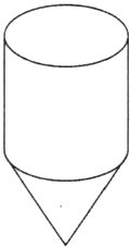 5.[身边的数学]一种儿童玩具陀螺(如下图),它的上面是圆柱,下面是圆锥。经过测试,当圆柱的底面直径是3cm,高是4cm,圆锥的高是圆柱高的$\frac{3}{4}$时,陀螺才能转得又稳又快。这样一个陀螺的体积是多少?