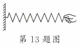 13.如图所示,某人用12N的力沿水平方向向右拉一根轻质弹簧,弹簧对手的拉力__________(选填“大于”“小于”或“等于”)12N,手受到的拉力的施力物体是________。