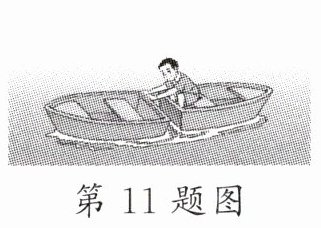 11.(教材习题改编)如图所示,人坐在小船上,在用力向前推另一艘小船时,人和自己坐的小船却向后移动。由上述现象,不能得出的结论是 ( )