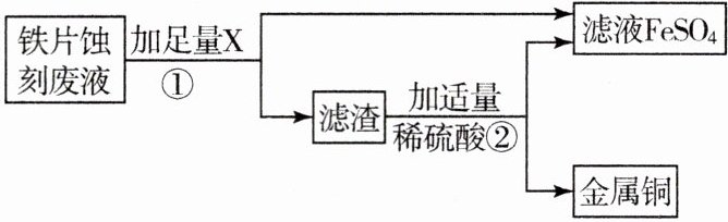 过程①加入的物质X是 ,过程②加入稀硫酸反应的化学方程式: 。