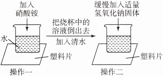 (1)操作一:加入硝酸铵后,一会儿发现烧杯与塑料片粘在一起,其原因是硝酸铵晶体溶于水时______热量,使溶液的温度降到0℃以下,塑料片上的水结成冰。