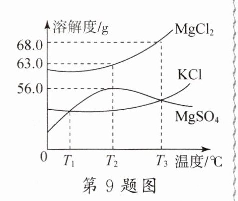 9.(2024·安徽模拟)如图为MgCl₂、KCl和MgSO₄的溶解度曲线。下列说法正确的是( )