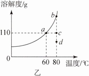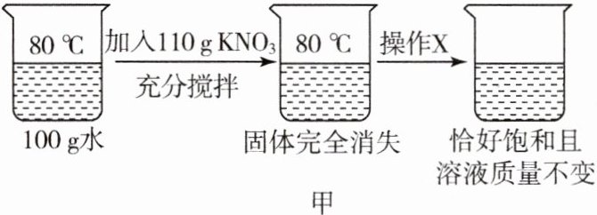 11.硝酸钾溶解度曲线如图乙所示,图甲中“操作X”前后溶液状态变化过程可以在图乙中表示为( )