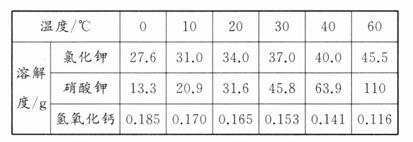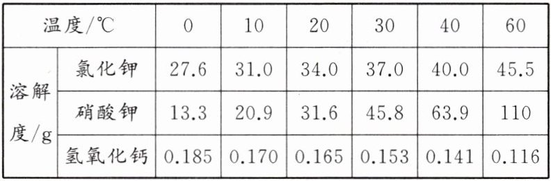 【例2】下表是氯化钾、硝酸钾、氢氧化钙三种物质在不同温度时的溶解度。