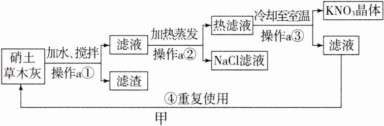 4.硝土中含有硝酸镁、硝酸钙、氯化钠等物质,草木灰的主要成分是碳酸钾,民间曾用硝土和草木灰作原料来制取硝酸钾,其主要生产流程如图甲;某课外小组模仿该生产流程在实验室进行实验,请回答有关问题: