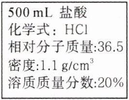 9.如图是实验室所用浓盐酸试剂瓶上标签的部分内容,请仔细阅读后计算:
