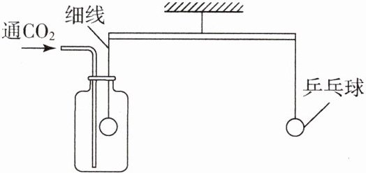 9.新考向 跨学科 如图,杠杆已调至平衡,向集气瓶内缓慢通入一定量的CO₂气体,稍后再倒入浓NaOH溶液(液面不接触乒乓球)。下列说法正确的是( )