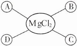 6.(2024·阜阳月考)学习了金属、酸、碱、盐知识之后,某同学绘制了$MgCl_{2}$的化学性质规律图(“—”表示两端物质能相互反应)。图中A、B、C、D所代表物质错误的是( )