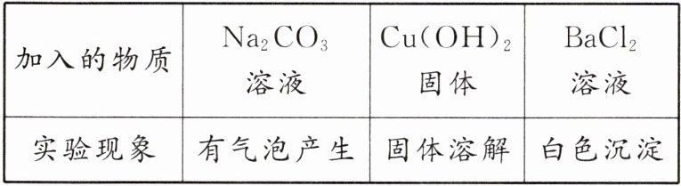 【拓展延伸】在探究物质的成分时,我们经常通过不同的化学反应现象来验证实验结果,现有一瓶失去标签的无色溶液X,已知它们是稀硫酸、$Na_{2}SO_{4}$溶液、稀盐酸中的一种,取三份等质量的溶液,向其中分别加入$Na_{2}CO_{3}$溶液、$Cu(OH)_{2}$固体、$BaCl_{2}$溶液,产生的现象如下表所述。