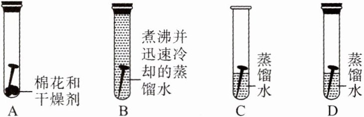 该小组利用如下装置对铁钉锈蚀的条件进行探究,一段时间后,在A和B中没有观察到明显现象,C和D中铁钉有锈蚀。