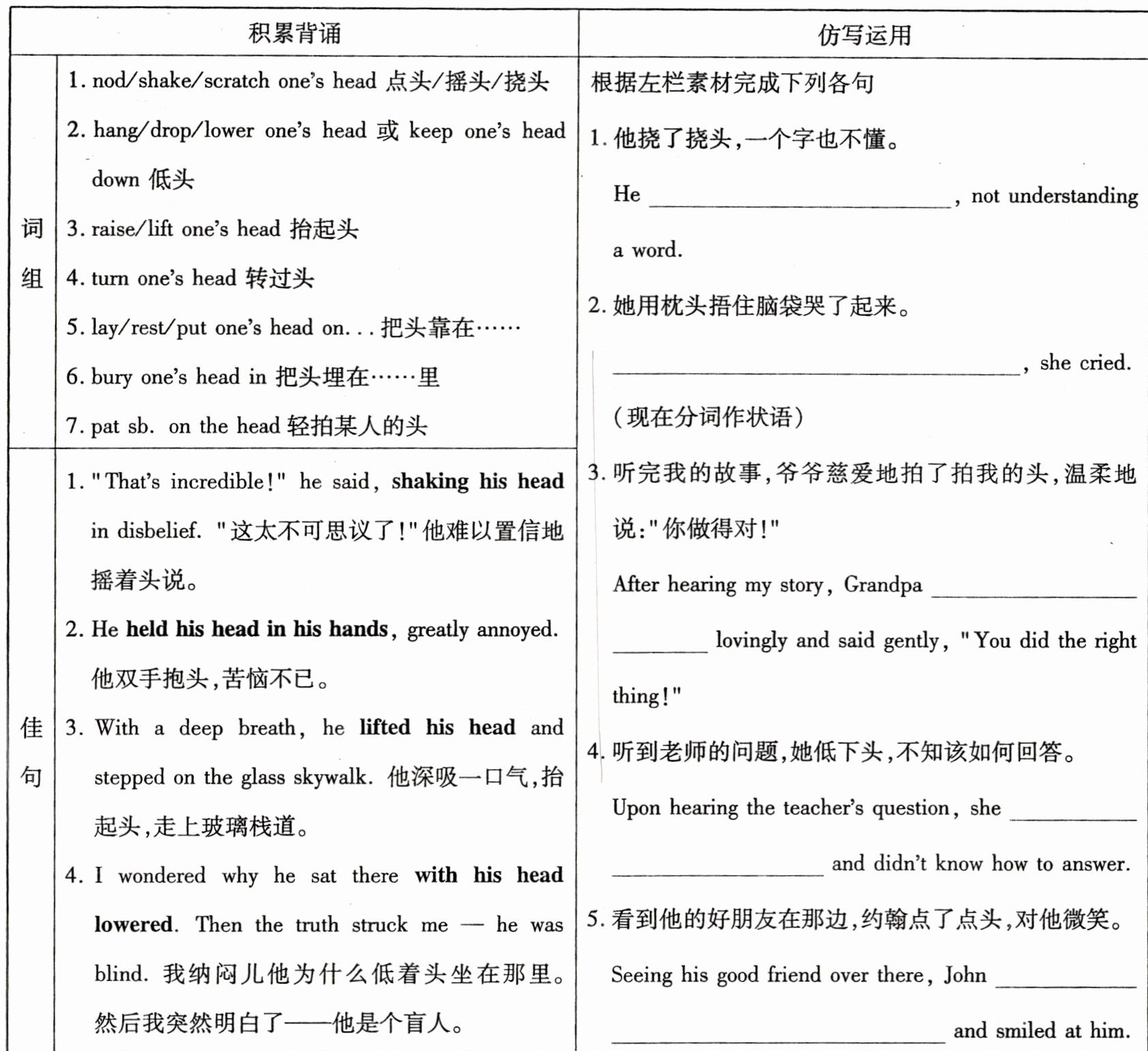 写作二 读后续写——动作描写之"头部"动作