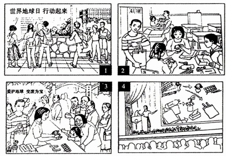 [北京高考]假设你是红星中学高三一班的学生李华。你班同学参加了学校的"地球日"系列活动。请按照以下四幅图的先后顺序,以"Actions for a Greener Earth"为题,给校刊"英语角"写一篇英文稿件,介绍活动的全过程。