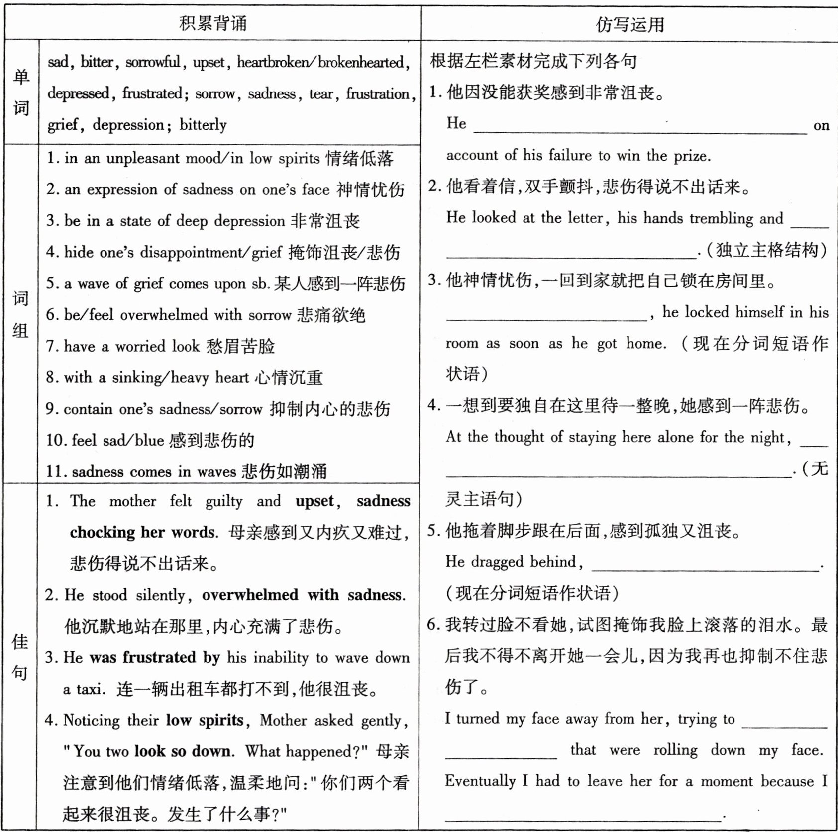 写作二 读后续写——情感描写之悲伤与沮丧(一)