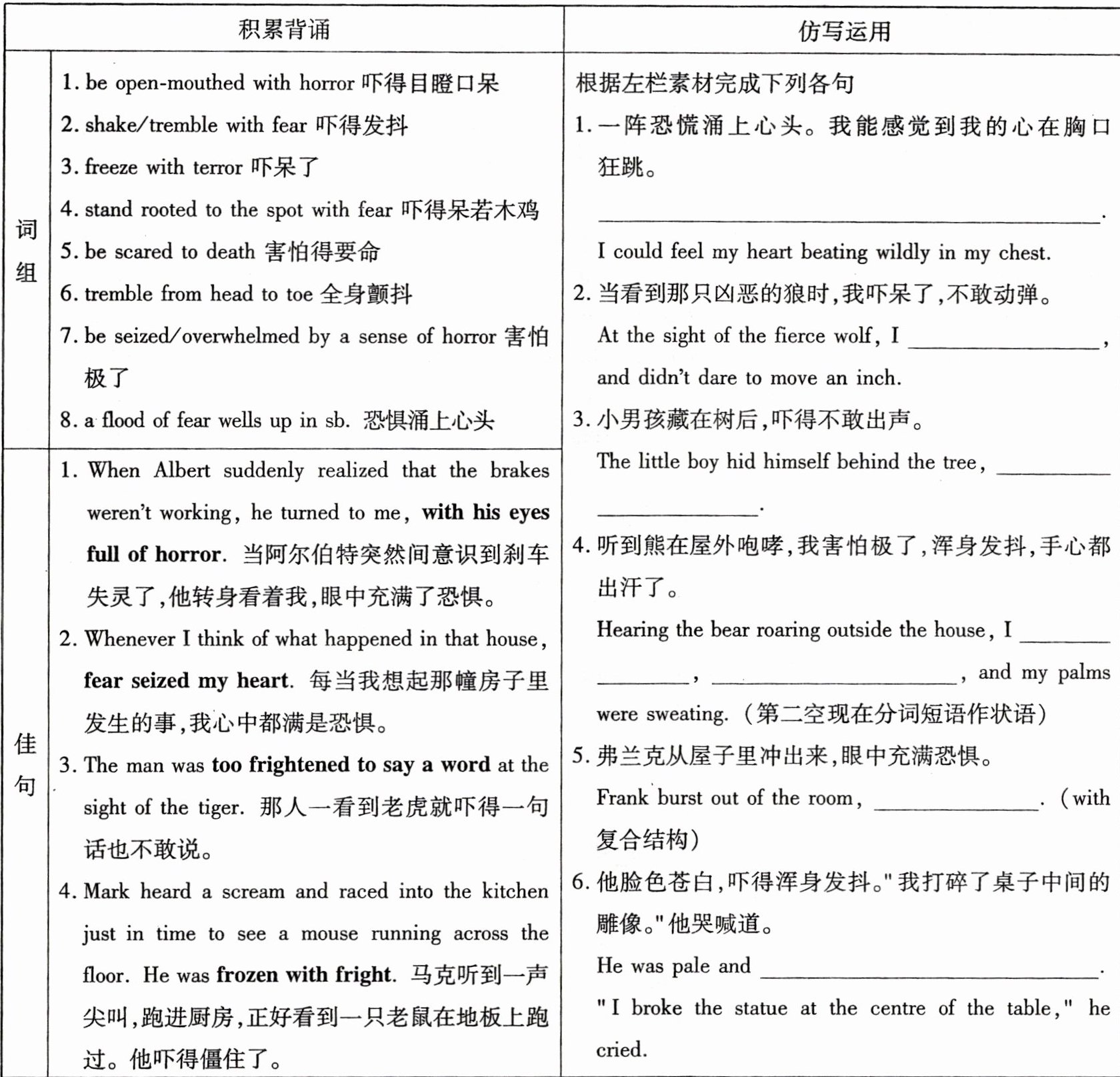 写作二 读后续写——情感描写之害怕与恐惧(二)