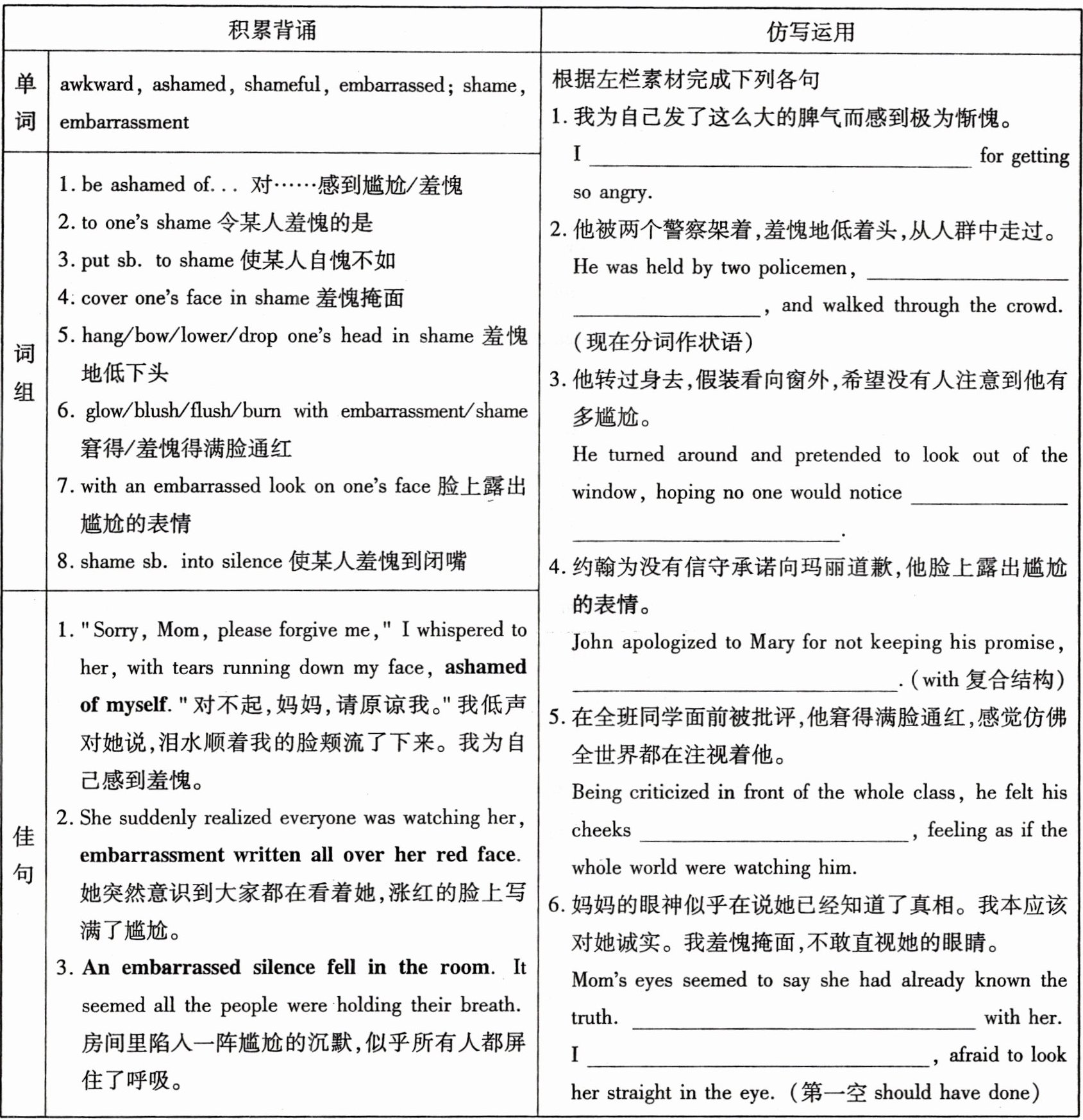 写作二 读后续写——情感描写之尴尬与羞愧