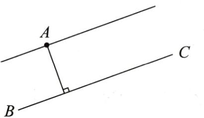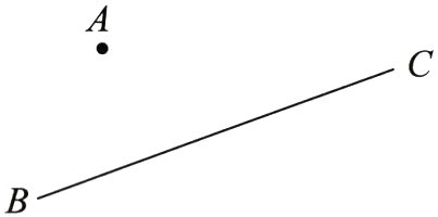 1. 过图中的点$A$,画直线$BC$的平行线和垂线。(2分)