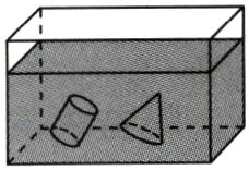 12. 在长15cm、宽10cm的长方体容器中注入一些水,将等底、等高的圆柱和圆锥浸没在水中(如图),水面上升了2cm。圆柱的体积是( )cm³,圆锥的体积是( )cm³。