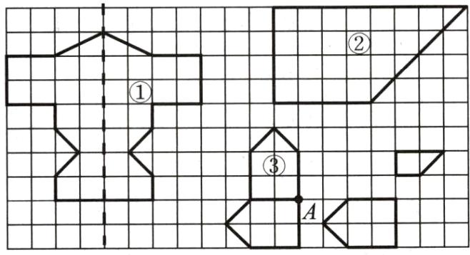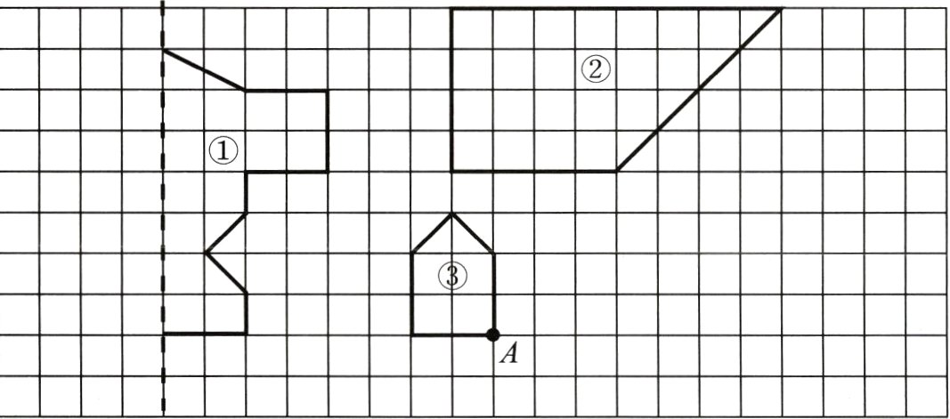 (3)将图形③先绕A点按逆时针方向旋转90°画出来,再将旋转后的图形向右平移4格画出来。