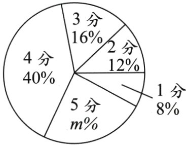 5. 为了解某电影在五一期间上映满意度情况,抽取部分观众对这部电影进行打分(打分按从高到低分为5个分值,即5分、4分、3分、2分、1分),根据调查结果绘制出扇形统计图(如右图),则m=( )。如果打5分的有72人,那么调查了( )人。