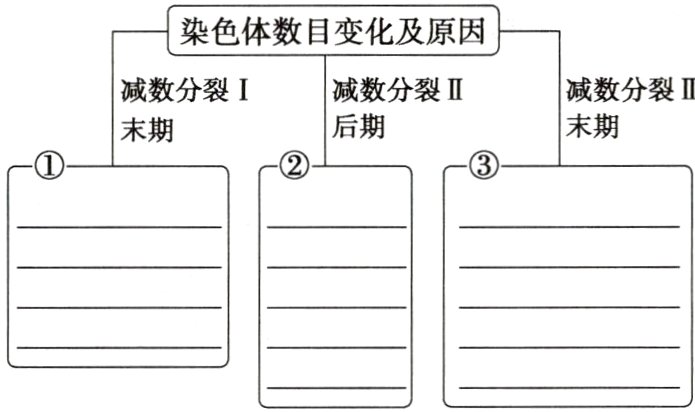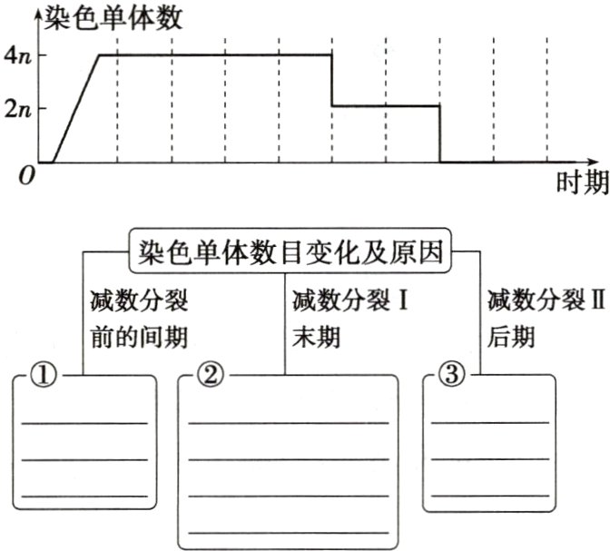 (3)DNA复制,染色单体形成 同源染色体分离,并分别进入两个子细胞,染色单体数目减少 着丝粒分裂,染色单体消失