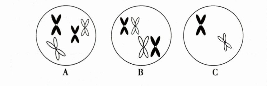 结论:A为有丝分裂前期,B为减数分裂I前期,C为减数分裂Ⅱ前期。