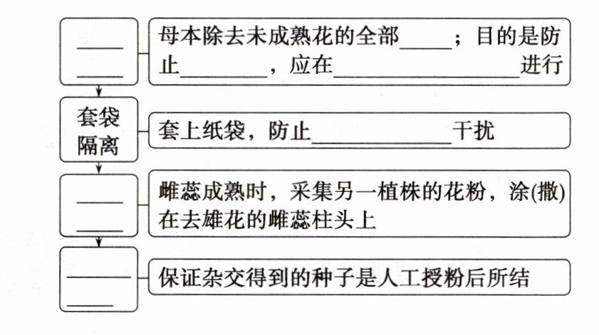 人工去雄 雄蕊 自花传粉 花蕾期(开花前) 外来花粉 人工授粉 再套袋隔离
