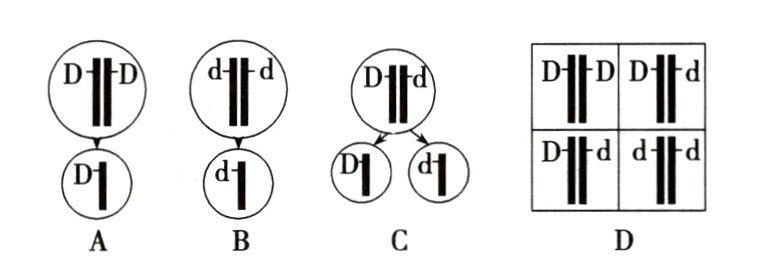 C 解析:DD和dd不含等位基因,只能产生一种配子,不能正确表示基因分离定律实质,A、B错误;Dd是杂合子,含有等位基因,在减数分裂Ⅰ后期,等位基因分离,产生D和d两种配子,比例为1:1,能正确表示基因分离定律实质,C正确;图示表示D和d两种雌雄配子随机结合,完成受精作用,不能正确表示基因分离定律实质,D错误。
