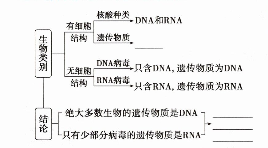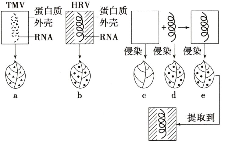 A 解析:a组和b组分别由TMV和HRV直接侵染烟草叶片,属于空白对照组,A错误;将TMV的蛋白质外壳和HRV的RNA进行重组,获得重组病毒,其后代是HRV,B正确;该实验只设计了用HRV的RNA和TMV的蛋白质外壳重组获得的病毒侵染烟草叶片,只能证明RNA是HRV的遗传物质,C正确;病毒的蛋白质外壳和RNA均含有N,无法用15N将蛋白质外壳和RNA区分开,且15N没有放射性,不能选择15N标记,D正确。