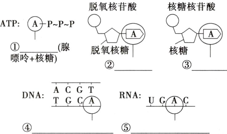 2.写出下列DNA、RNA、ATP和核苷酸中“A”的含义。