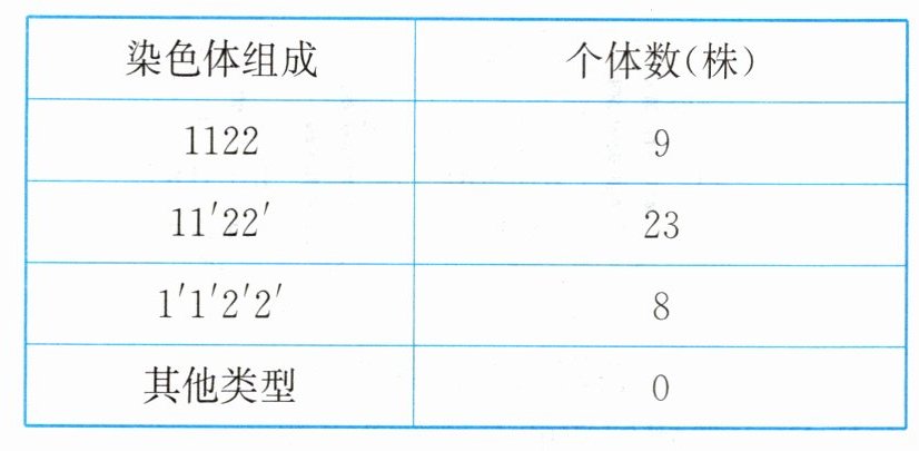 2. (2024·北京东城二模)研究人员以野生型拟南芥为材料获得了细胞中染色体互换片段的品系甲(如图)。品系甲自交后代染色体组成及个体数见下表。由于部分种类配子不育,三种染色体组成的个体比例接近1∶2∶1。下列叙述错误的是( )