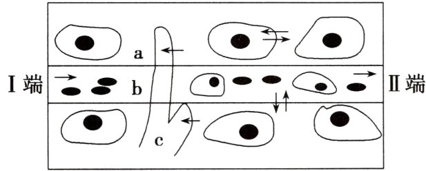 C 解析:b为血浆,血浆渗透压主要与其中的无机盐和蛋白质的含量有关,A错误;a中大部分组织液通过毛细血管静脉端回流到b,少部分透过毛细淋巴管壁形成c,B错误;若图示方框为肝脏,则饱饭后血浆中的葡萄糖经Ⅰ端到组织液并进入肝细胞内合成肝糖原,所以Ⅱ端葡萄糖含量变低,C正确;若图示方框为胰岛组织,则饱饭后经消化吸收的大量血糖经Ⅰ端进入组织液,刺激胰岛B细胞分泌胰岛素,胰岛素经图中Ⅱ端到血浆,所以Ⅱ端胰岛素含量高、但葡萄糖含量低,D错误。