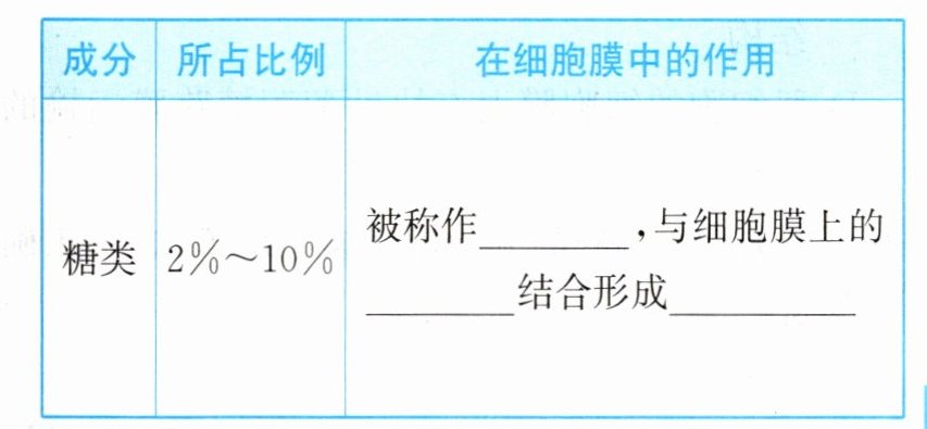 磷脂双分子层 胆固醇 种类和数量 糖被 蛋白质或脂质 糖蛋白或糖脂
