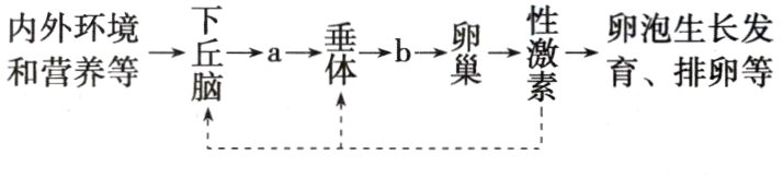 6.D 解析:激素a(促性腺激素释放激素)、b(促性腺激素)属于多肽或蛋白质类激素,均在核糖体中合成,而性激素属于脂质,在内质网中合成,A错误;性激素的化学本质是脂质,作用的受体分布在下丘脑和垂体细胞内,B错误;对雌性动物长期饲喂性激素,会反过来抑制下丘脑和垂体的激素分泌,引起卵巢分泌性激素量减少,会使卵巢功能减退,C错误;分级调节有利于对机体精细调控,对维持内环境稳态有重要意义,D正确。
