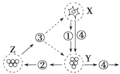 5. 如图是人体有关激素分泌调控的模式图,图中X、Y、Z表示相应内分泌器官,①~④表示相应激素。下列相关叙述错误的是 ( )
