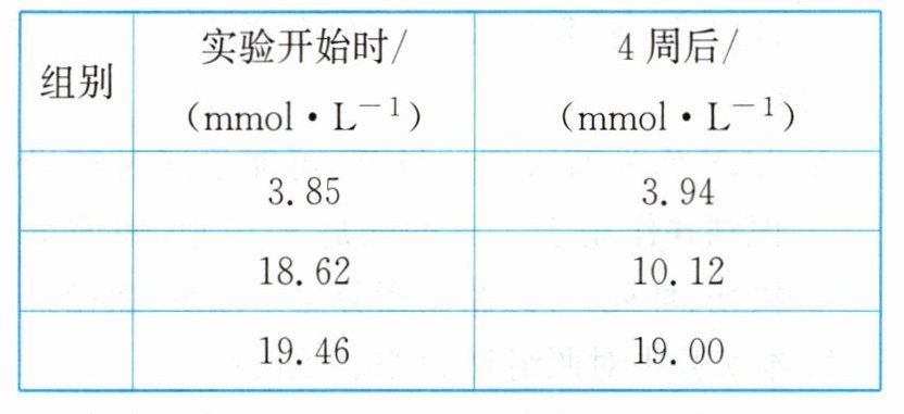 (4)实验开始时甲组大鼠的血糖浓度相对正常,乙组和丙组大鼠的血糖浓度相对较高,而桑叶提取液有降血糖的作用,所以据题表分析可知,“组别”栏从上到下依次是甲、丙、乙。