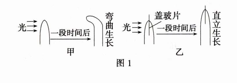 1. 为探究植物生长素的作用机理,某同学设计了图1、图2所示实验,探究单侧光是使胚芽鞘尖端的生长素转移了,还是将生长素分解了。下列说法不正确的是 ( )