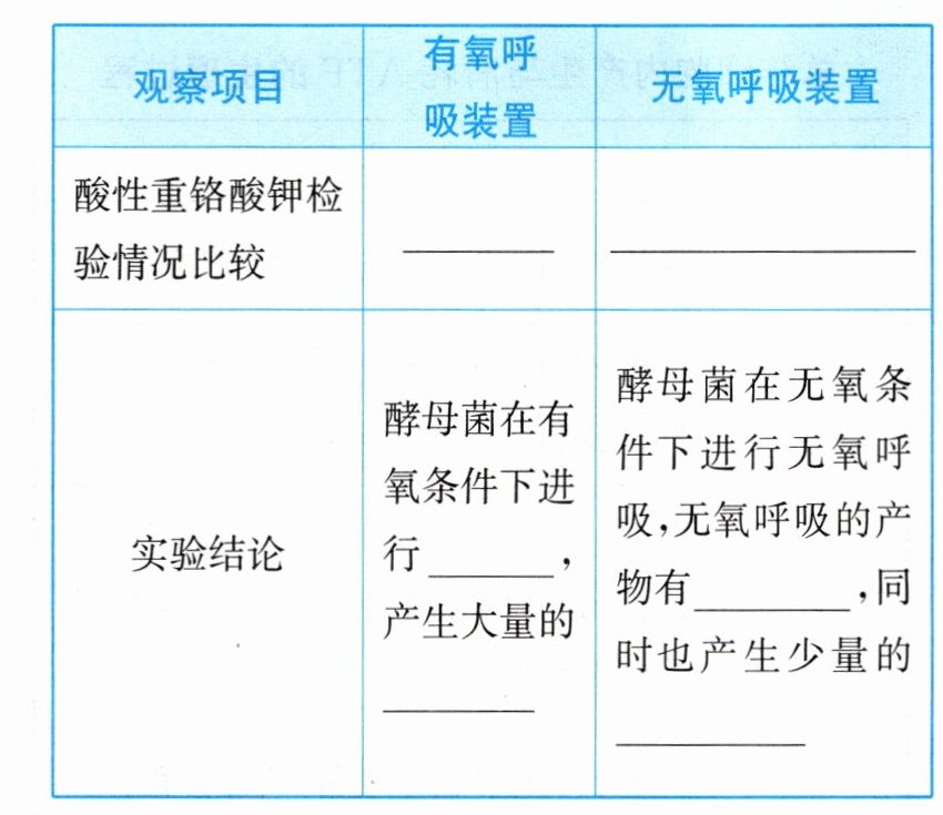 ②因变量为____________________________。CO₂的鉴定:CO₂可使______________变浑浊,也可使__________________溶液由蓝变绿再变黄。酒精的鉴定:酒精与橙色的________溶液在________条件下发生化学反应,变成________色。