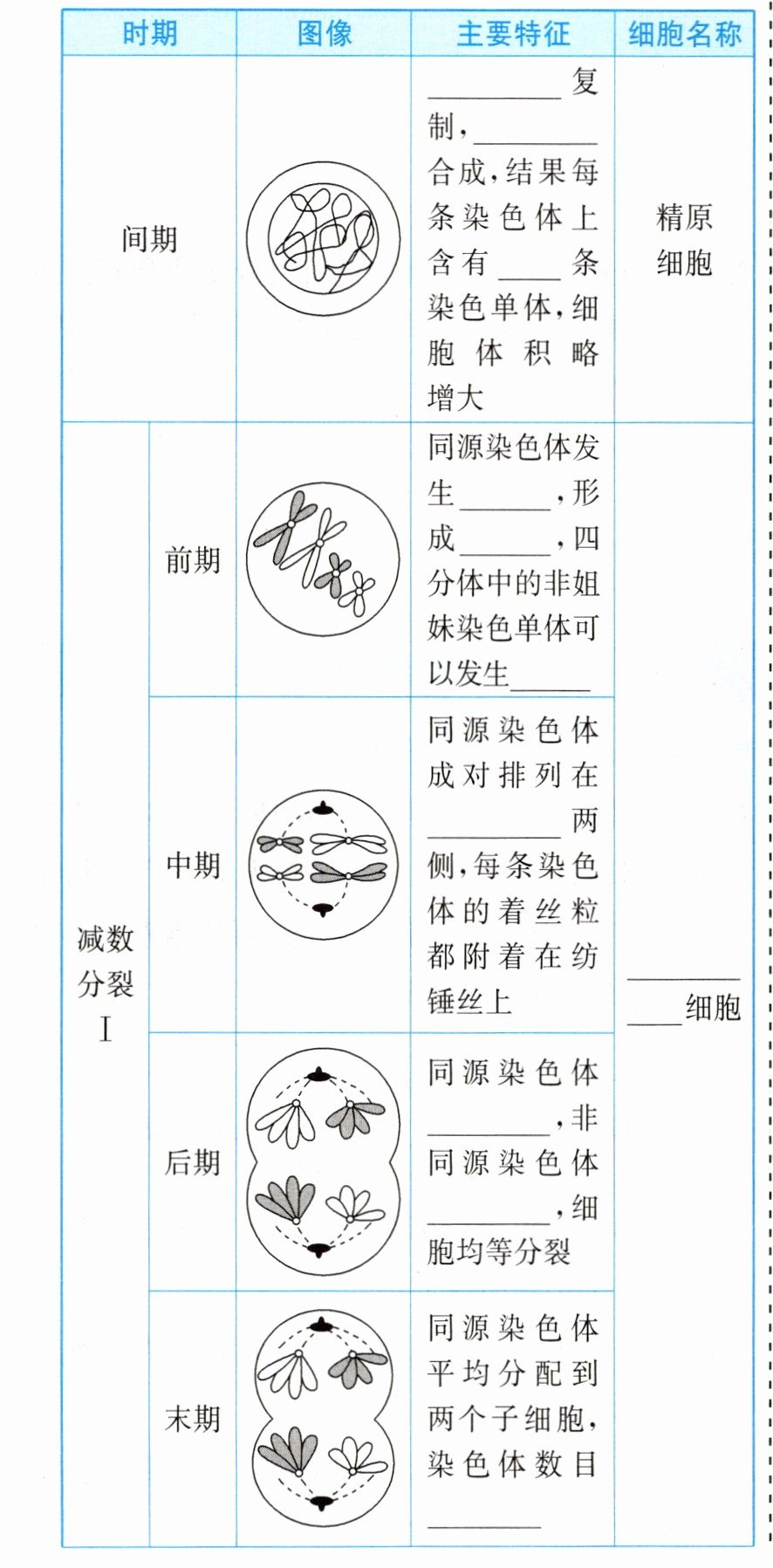 DNA 有关蛋白质 2 联会 四分体 互换 赤道板 分离 自由组合 减半 初级精母 没有 着丝粒 分裂 染色体 加倍