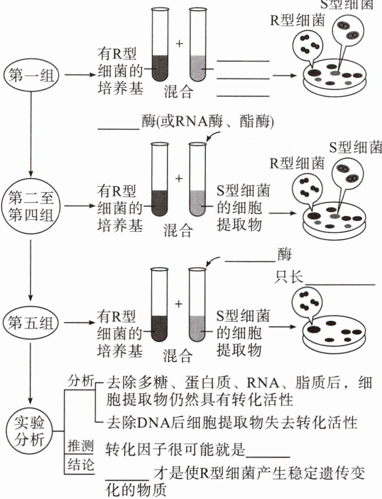 2.S型细菌的细胞提取物 蛋白 DNA R型细菌 DNA DNA