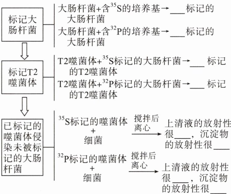 噬菌体颗粒,而离心管的沉淀物中留下被侵染的大肠杆菌。