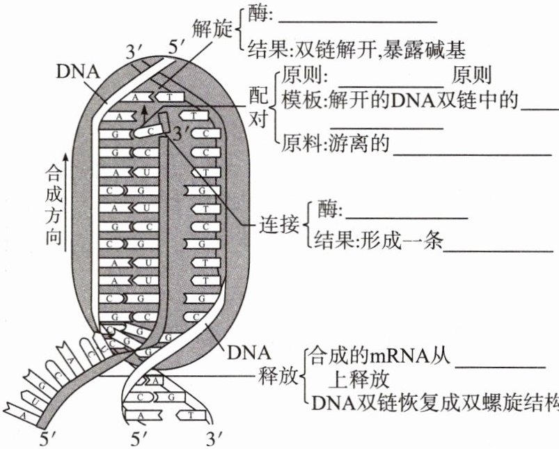 合成的mRNA从DNA链上释放 DNA双链恢复成双螺旋结构