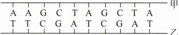 (1)右图是一小段DNA片段,甲链是模板链,请写出其转录合成的RNA的碱基序列。