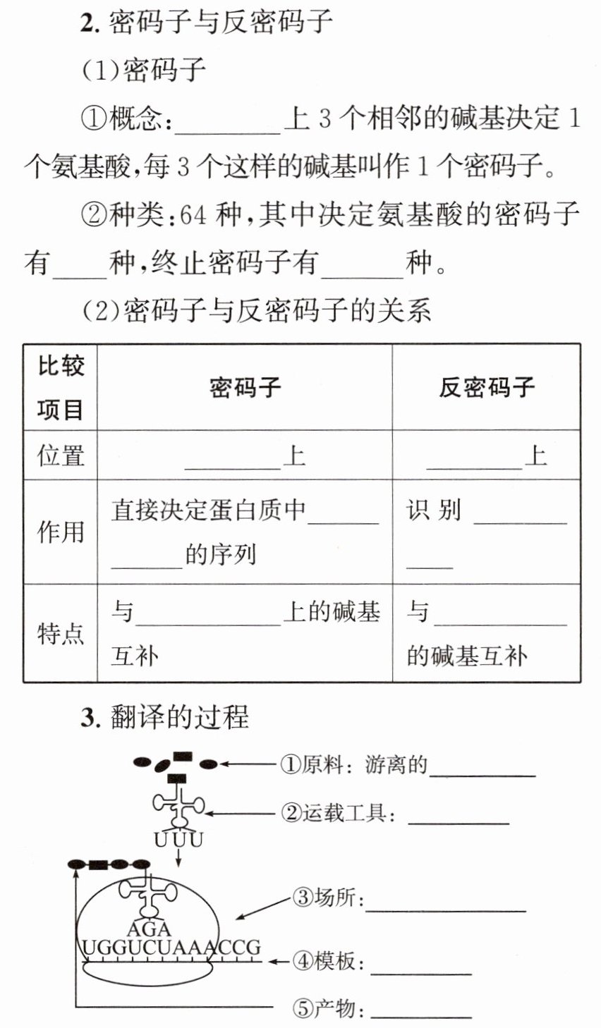 2. 密码子与反密码子