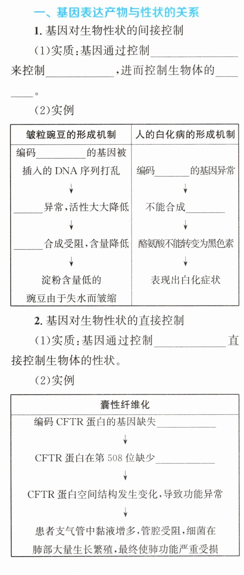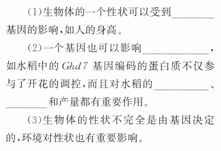 1.表达产物 表达水平的高低 2.(1)多个 (2)多个性状 生长 发育