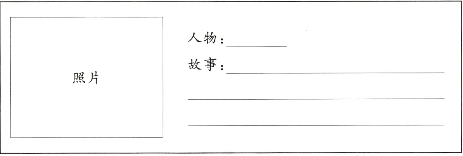 正是因为有了共 产 党,我们才有了如今的好 生活,请你选其 中 一个代表,为他(她)制作一 张 人物卡片。(可以 向爸爸妈妈求助)