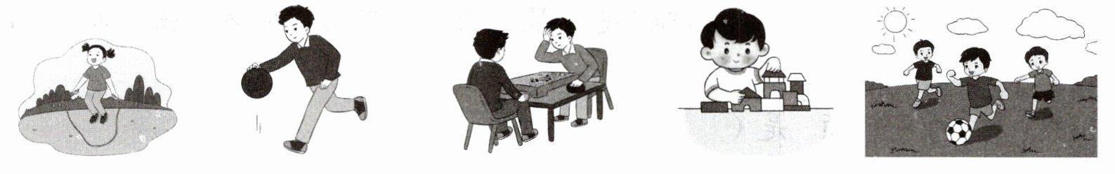 ( )绳 ( )篮球 ( )象棋 ( )积木 ( )足球