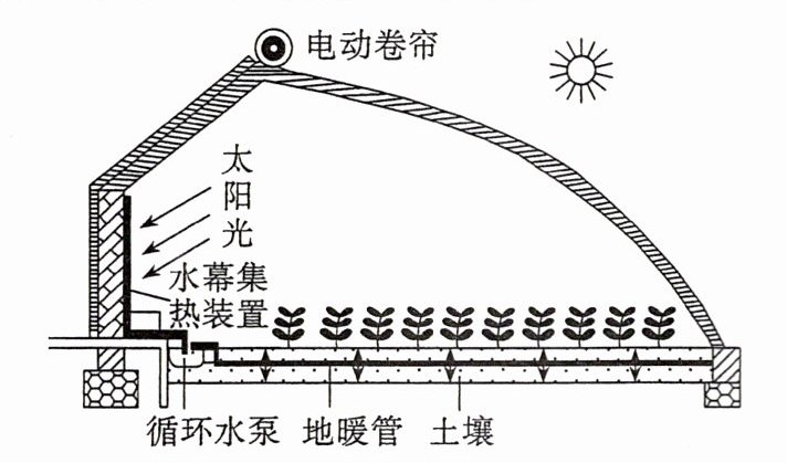 (2)与传统温室相比,简述该沙漠温室后墙加厚及水幕集热—地暖加温系统的作用。