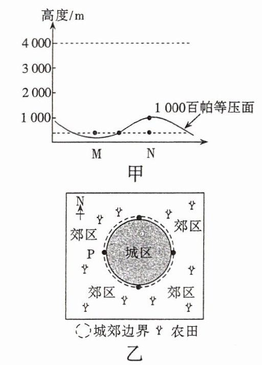(2)若甲图代表白天海陆之间的等压面状况,则M代表______,N代表______(陆地或海洋)。