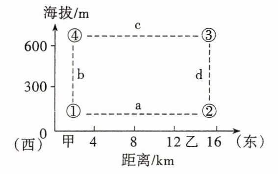 (2024.河北石家庄市期末)下图为北半球某地区热力环流示意图,虚线a、b、c、d示意气流运动轨迹。读图,完成1~2题。